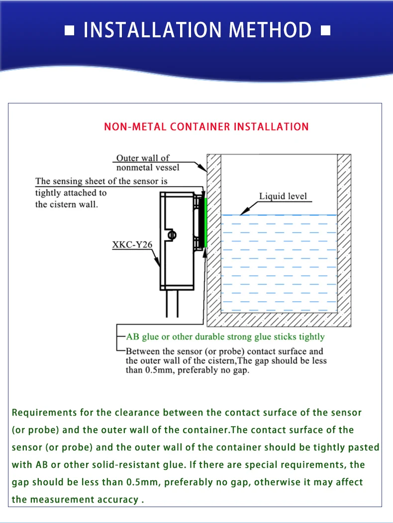 1. XKC-Y26-XXX non-contact liquid level sensor is suitable for all kinds of non-metal containers. The product detects